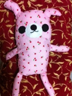Adeline has given me a piece of very beautiful vintage-like fabric. I was very excited as I have always wanted to sew a classical bear and this is a wonderful opportunity. Here are the work in progress images I have uploaded:
